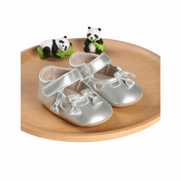 $14.00These silver ballerina shoes feature a charming bow detail, combining comfort with a refined look suitable for both special occasions and everyday wear. Designed for easy pairing, they complement dresses, skirts, or casual outfits with a subtle touch of shine. A versatile footwear choice, they add elegance and style to any child’s wardrobe