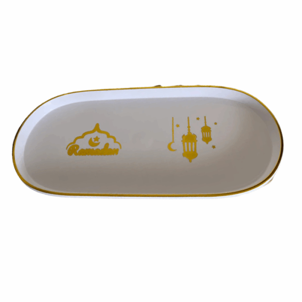 $2.00 – $3.00The Ramadan Plastic Oval Tray is crafted from durable plastic and features intricate gold Ramadan-themed designs on a white background. Available in three sizes, it provides a practical and stylish solution for serving food, drinks, or sweets during Ramadan gatherings. Lightweight and easy to clean, these trays combine festive elegance with everyday functionality.