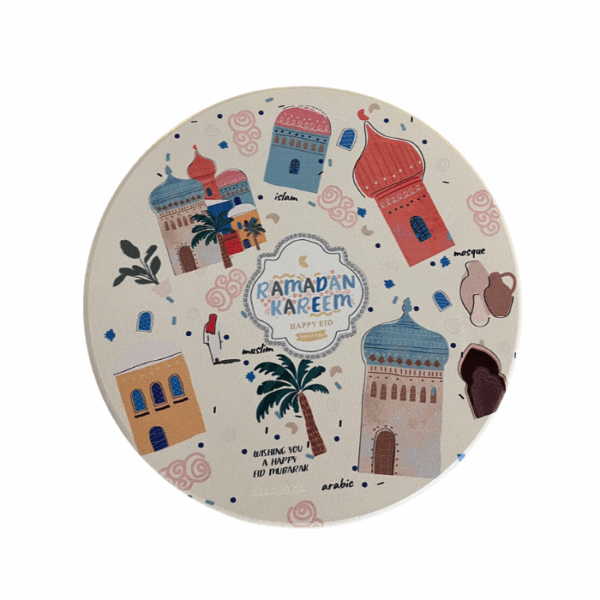 $4.00The Ramadan Round Stone Coaster, 19 cm in diameter, features three unique Ramadan-themed designs. Made from durable stone, it protects surfaces from heat and moisture while adding a festive decorative touch. Ideal for serving drinks during Ramadan gatherings, it combines functionality with elegance and long-lasting quality.