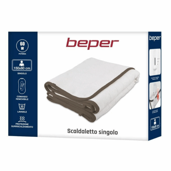 $34.00<p>The Beper single bed warmer provides cozy warmth for a restful night, perfect for cold winter months. Made of soft polyester for maximum comfort, it features two adjustable temperature settings controlled by a remote, an integrated safety system for overheating protection, and a washable design with removable remote. The bed warmer measures 62x24x41.5 cm and weighs 1.26 kg.</p>