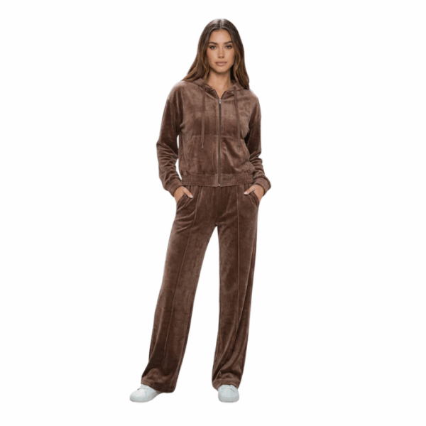 Long Sleeve Velvet Jacket With Jogging Brown Set