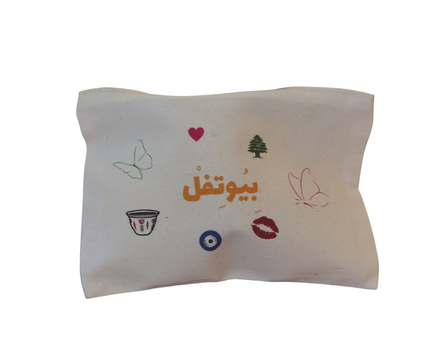 The “بِيُوتِفل” pouch is a compact accessory designed to store daily essentials while featuring a playful, modern Arabic inspired design. Lightweight and practical, it fits easily into a handbag or can be carried alone for quick outings. Style it as a casual clutch or use it to organize cosmetics, accessories, or small must haves.