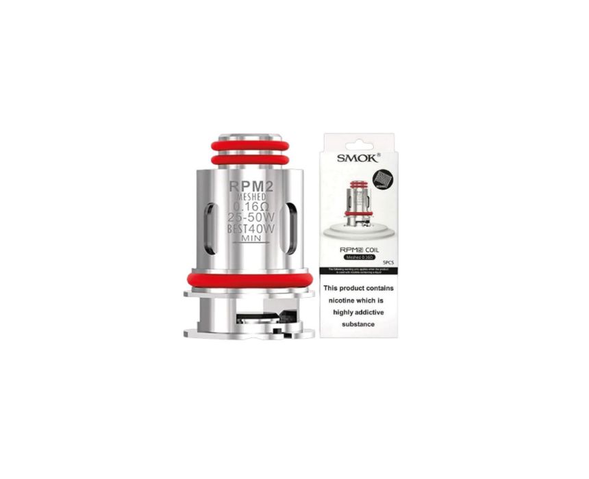 The RPM 2 Mesh Coils feature a 0.16ohm resistance, designed to provide a dense vapor and enhanced flavor production. Perfectly compatible with the SMOK RPM 2 series, these coils ensure fast and even heating thanks to their mesh design. The 0.16ohm resistance allows for higher wattage, producing thicker clouds and richer taste. This pack includes 5 coils, making it an ideal choice for frequent vapers looking to maintain optimal performance in their device.