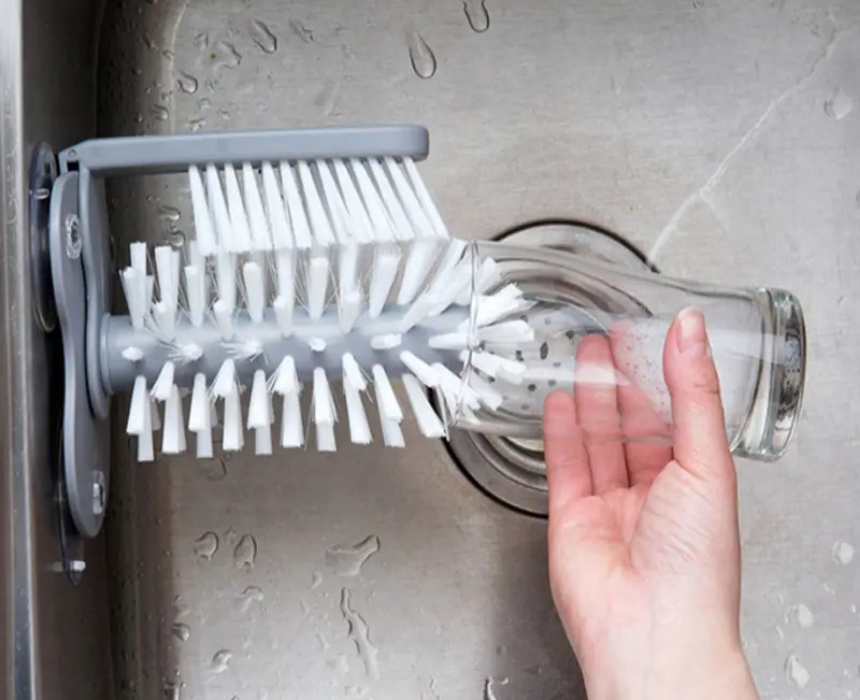 This 2-in-1 cup scrubber and bottle brush combines a soft, non-scratching bristle brush with a suction cup base for hands-free cleaning of mugs, glasses, and bottles. Its ergonomic handle and compact design make it easy to use and store, perfect for kitchens, bars, or as a thoughtful gift for housewarmings or newlyweds.