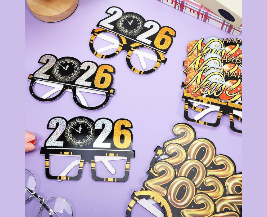 Celebrate in style with these 2026 Black & Gold Paper Eyeglasses, featuring a pack of 6 random fun designs, perfect for photo booths, party favors, or adding a playful touch to New Year celebrations, easy to wear and share with friends and family, ideal for festive gatherings and holiday parties.