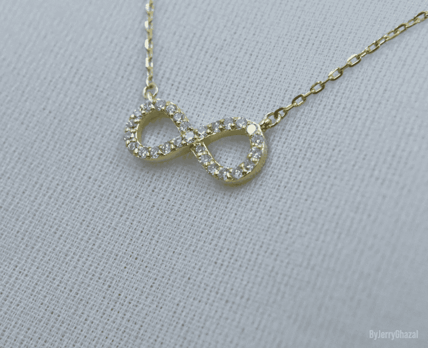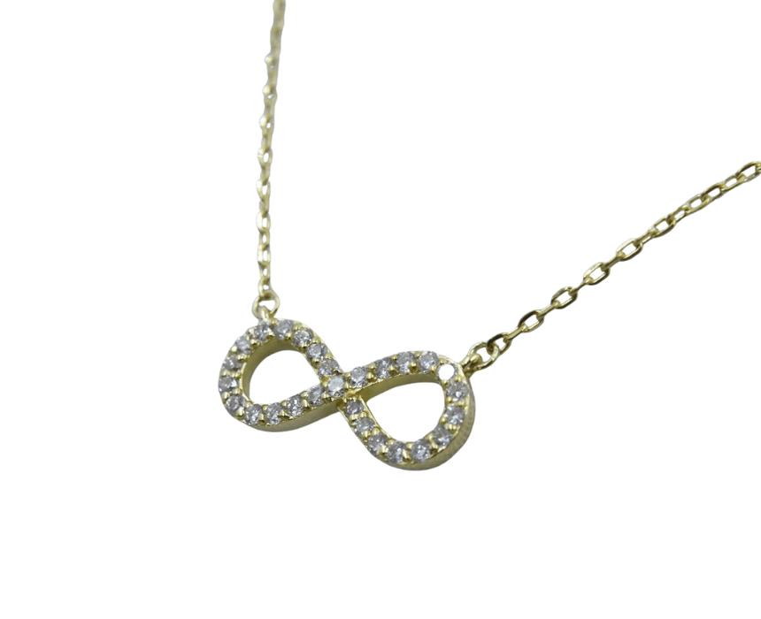The Pavé Diamond Infinity Necklace is a stunning 18K gold piece featuring a 1.3 cm wide infinity pendant adorned with pavé diamonds. Elegant and symbolic, it’s perfect for everyday wear or as a meaningful gift representing love, eternity, and connection.