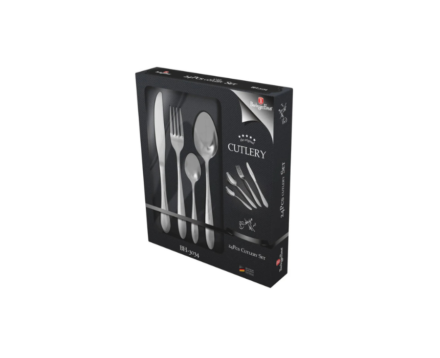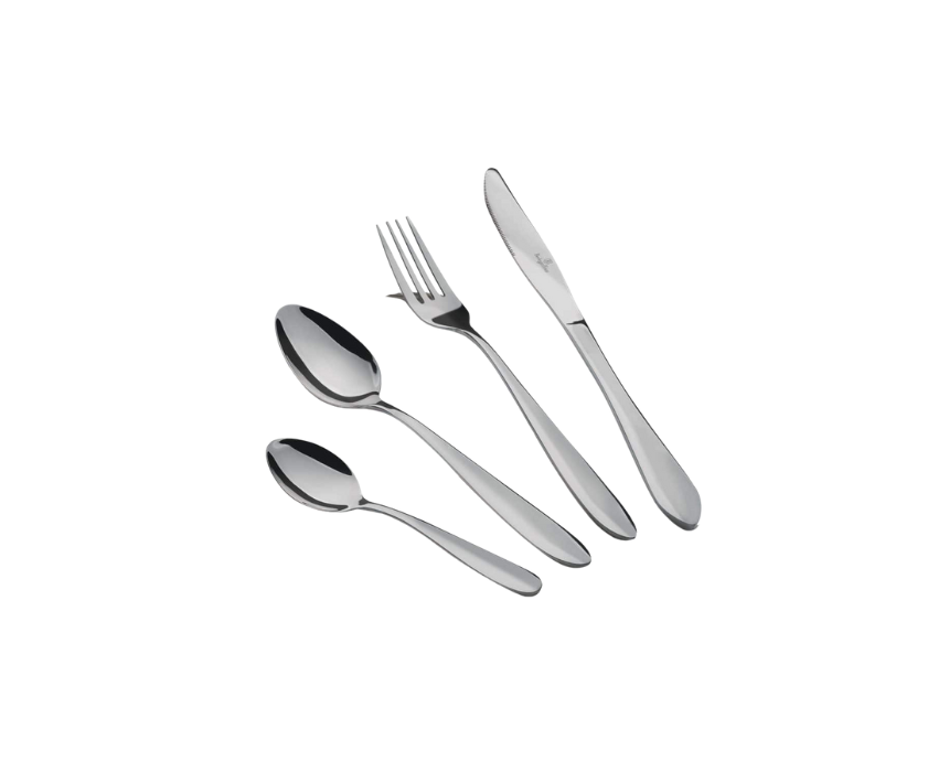 This elegant 24-piece stainless steel cutlery set includes 6 table knives, 6 forks, 6 spoons, and 6 tea spoons, each crafted for comfort, balance, and effortless use. The full mirror finish adds a touch of sophistication to any dining table while ensuring long-lasting shine and durability, making every meal a refined experience. Ideal for everyday dining or special occasions, it complements all table settings with style and practicality.