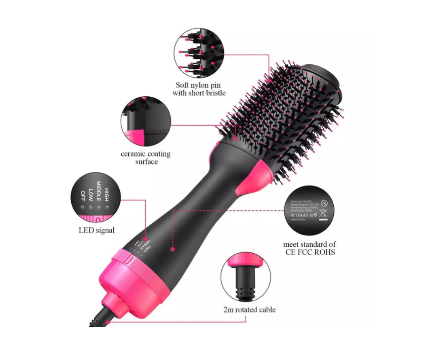 The 3 in 1 Hair Dryer, Straightener & Brush combines a dryer, straightener, and styling brush into one convenient tool, delivering smooth, voluminous, and sleek hair with ease. Its heat-protective technology ensures safe styling on damp or dry hair. Use it for everyday hair styling to achieve professional results at home or on the go.
