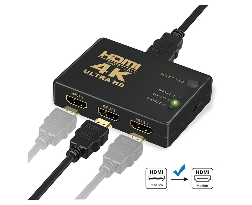 A high performance HDMI switch that allows you to connect up to three HDMI devices to a single display. It supports 4K Ultra HD resolution for clear and sharp visuals, making it perfect for gaming consoles, streaming devices, and media players. Designed for easy switching and stable signal transmission, it is ideal for home entertainment setups.