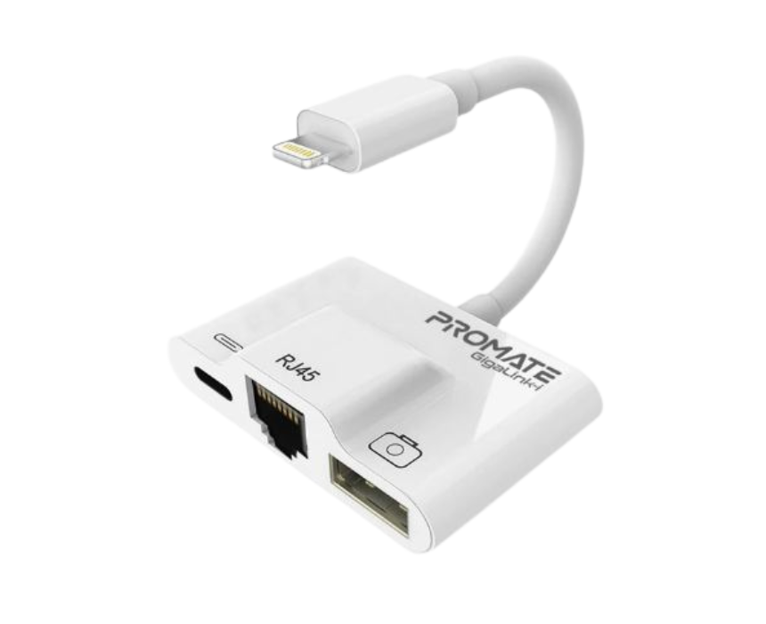 The 3 in 1 High Speed OTG Lightning Hub and Network Port Gigalink I enables fast data transfer, device charging, and wired network connectivity through a single Lightning port. Its compact design makes it ideal for travel, home, or office use, keeping devices connected and organized while adding a sleek, professional touch to any setup.