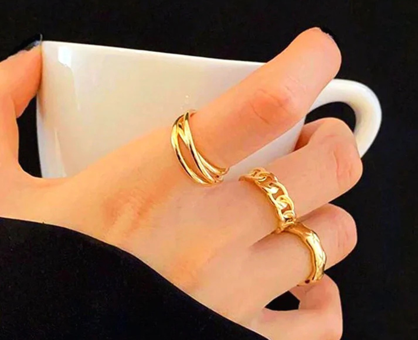 This set of 3 Minimalist Adjustable Rings is crafted from 18K gold plated stainless steel, offering a sleek and modern look for everyday wear. The adjustable design ensures a comfortable fit for all fingers, making it perfect for stacking or wearing individually. These versatile rings add a subtle touch of elegance to casual or formal outfits.