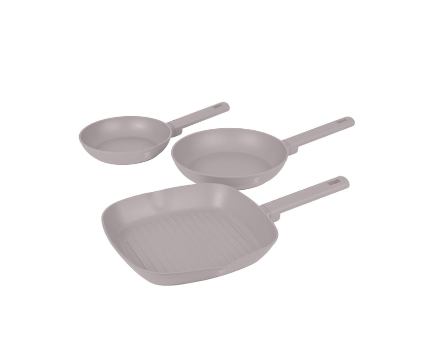 The Berlinger Haus BH8109 Frypan Set includes two frypans (Ø20 cm 1.0 L, Ø24 cm 1.7 L) and a grill pan (Ø28 cm 2.1 L) for versatile cooking, from frying and sautéing to grilling meats and vegetables with perfect marks. Made with eco-friendly, PFOA, lead, and cadmium-free materials, these pans ensure safe, healthy cooking while being gentle on the environment. Enjoy efficient meal preparation with a stylish, safe, and durable cookware set.
