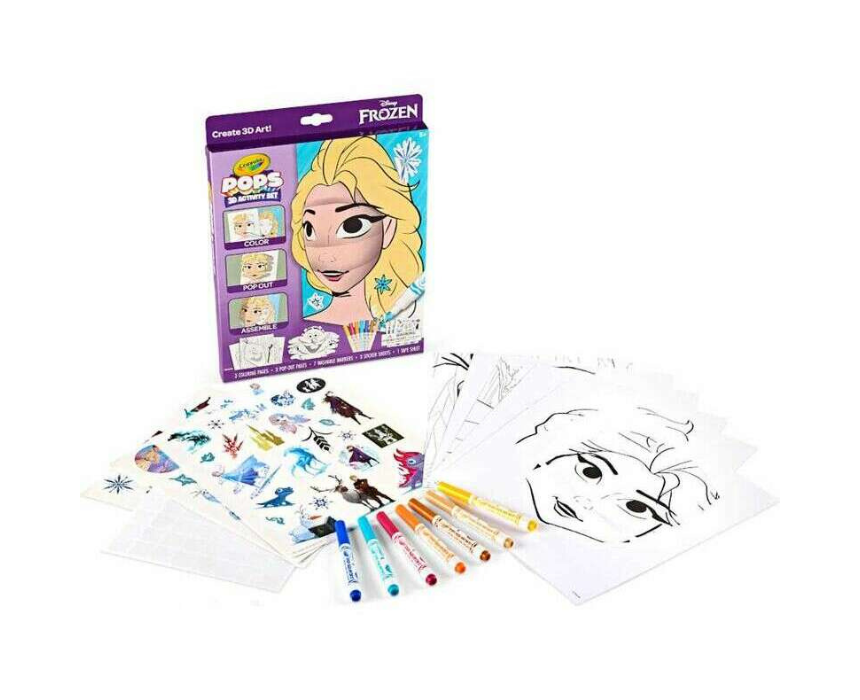 The Crayola POPs 3D Frozen Activity Set lets children color, sticker, and assemble 3 pop-out designs featuring Elsa, Anna, and Olaf for a magical creative experience. The set includes 3 coloring pages, 3 pop-out pages, 3 Frozen-themed sticker sheets, 1 sheet of tape, and 7 washable Pip-Squeaks markers. Safe, nontoxic, and ideal for kids aged 5 and up, it makes a perfect birthday or everyday gift for girls and boys.