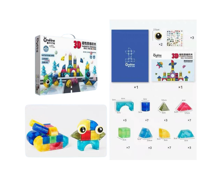 This 3D magnetic thinking building block set offers multiple piece options for creative and educational play. Designed for easy connection and stable 3D constructions it encourages problem solving, spatial reasoning, and fine motor skill development. Ideal for playrooms or classrooms, it can be styled into imaginative structures that inspire hands on learning and interactive fun for children aged three and up.
