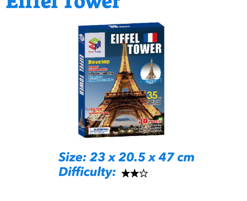 This 3D puzzle featuring world famous building architecture is an educational toy designed for children aged 5–13 years, helping develop problem-solving skills and hand-eye coordination through hands-on play. Made with 10–50 durable interlocking pieces from high-quality plastic and paper, it is EN71 and ASTM certified for safe, long-lasting use and makes a great gift for kids who enjoy puzzles and learning. For best enjoyment, assemble on a flat surface and style the finished model as a decorative display on a desk or shelf.