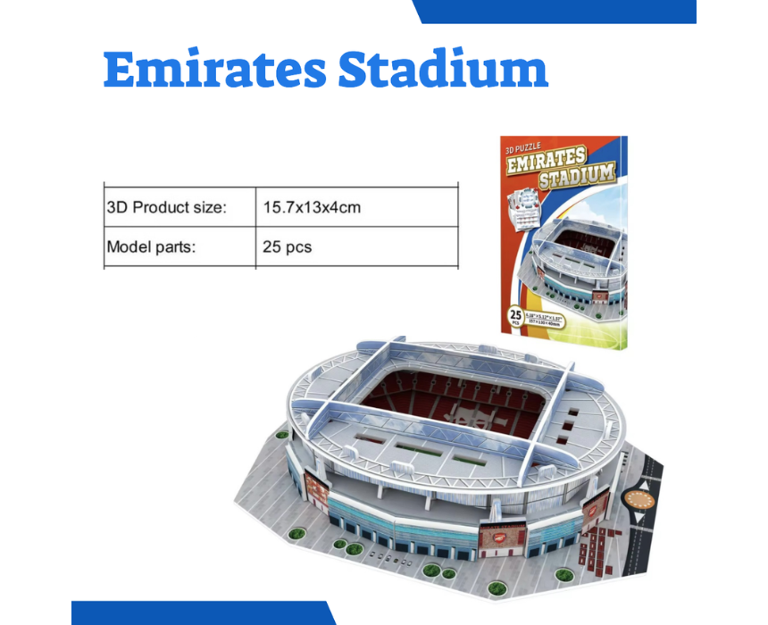 The 3D Puzzle Emirates Small Stadium captures the legendary home of Arsenal FC in a detailed, interactive model. Ideal for football fans and collectors, it serves as both a fun building activity and a striking display piece for desks, shelves, or game rooms. This engaging set makes a perfect gift for sports enthusiasts of all ages and skill levels.