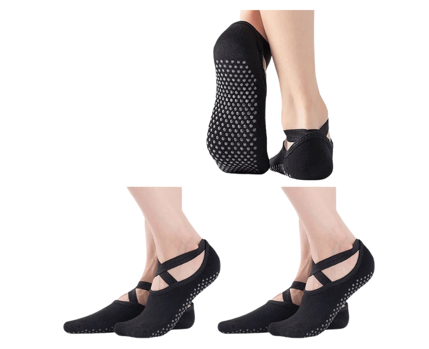 This set of three Pilates non-slip grip socks is designed to provide stability, traction, and comfort during yoga, Pilates, and floor workouts. The non-slip soles help prevent slipping on smooth surfaces, enhancing balance and safety. They are worn like regular socks and pair perfectly with activewear and yoga mats for a secure, focused, and stylish workout experience.