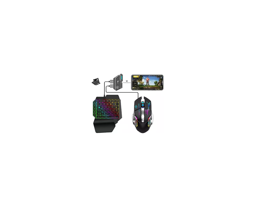 4 in 1 Mobile Game Combo Pack for Android is a complete gaming setup designed to deliver a PC like gaming experience on mobile devices. It includes a one handed K13 gaming keyboard, gaming mouse, keyboard and mouse converter, and an adjustable phone stand, offering fast response, smooth control, and no latency gameplay. Ideal for Android gamers, it supports direct connection, fast charging, and simple operation without apps or macros.