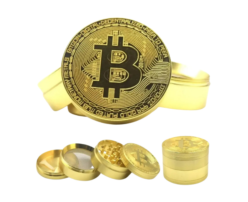 The 4-Layer Metal Bitcoin Herb Grinder features a stylish golden-tone finish with a unique Bitcoin design. Its four-layer construction and sharp teeth provide smooth, efficient grinding and sifting for herbs, spices, or tobacco. Compact and portable, it’s ideal for kitchen use or as a convenient smoking accessory.