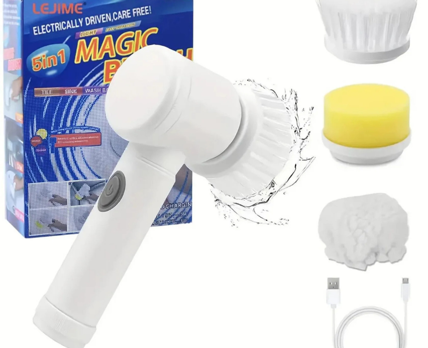 The 5 in 1 cleaning magic brush features interchangeable heads for scrubbing, dusting, detailing, and deep cleaning a wide range of surfaces, supported by a comfortable non slip handle for precise control. Its compact design fits easily into cleaning caddies and pairs well with color coded tools or organizers for a tidy, efficient setup.