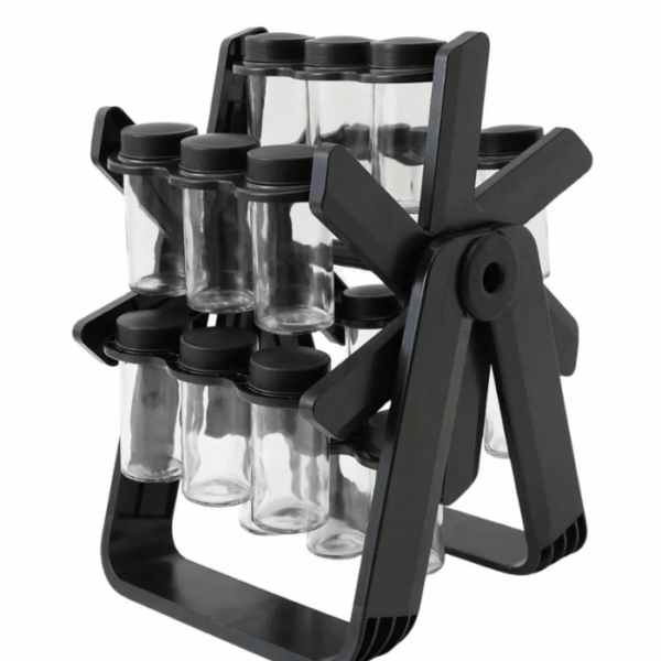 The 6 jar spice rack organizer keeps essential seasonings neatly arranged with clear, refillable jars and a compact stand that fits easily on countertops or inside cabinets. Its practical design helps maintain an organized kitchen; simply fill the jars with favorite spices and place the rack within reach for effortless cooking.