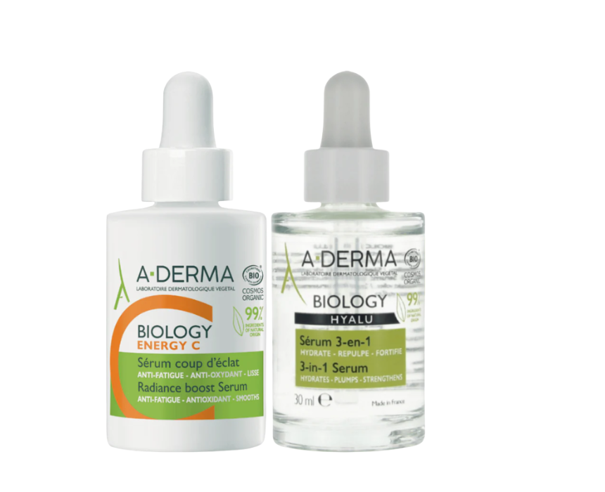 This skincare bundle combines the Biology Energy C Serum and Hyalu Serum 3in1 to revitalize, brighten, and deeply hydrate the skin. Vitamin C helps even skin tone and restore radiance, while hyaluronic acid plumps, smooths, and reduces fine lines for a refreshed, youthful appearance. Apply both serums daily on clean skin before moisturizer for optimal results.