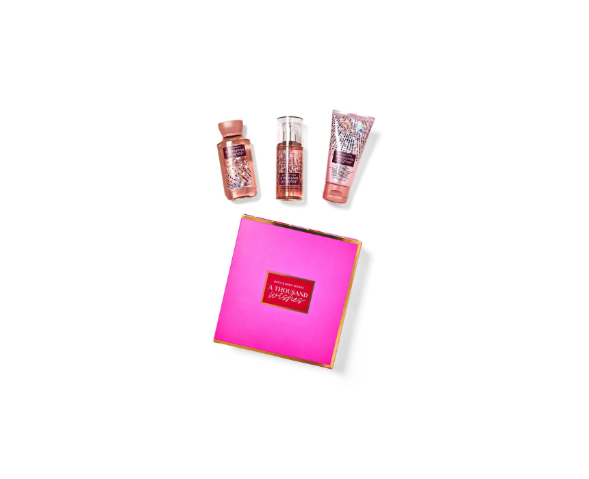 The Bath and Body Works A Thousand Wishes Mini Gift Box is a delightful fragrance set that captures the essence of celebration. Its sparkling notes of champagne, crystal peonies, and almond crème create a bubbly, beautiful scent perfect for gifting or personal indulgence. This mini set is ideal for those who love luxurious, uplifting fragrances in a compact and elegant format.