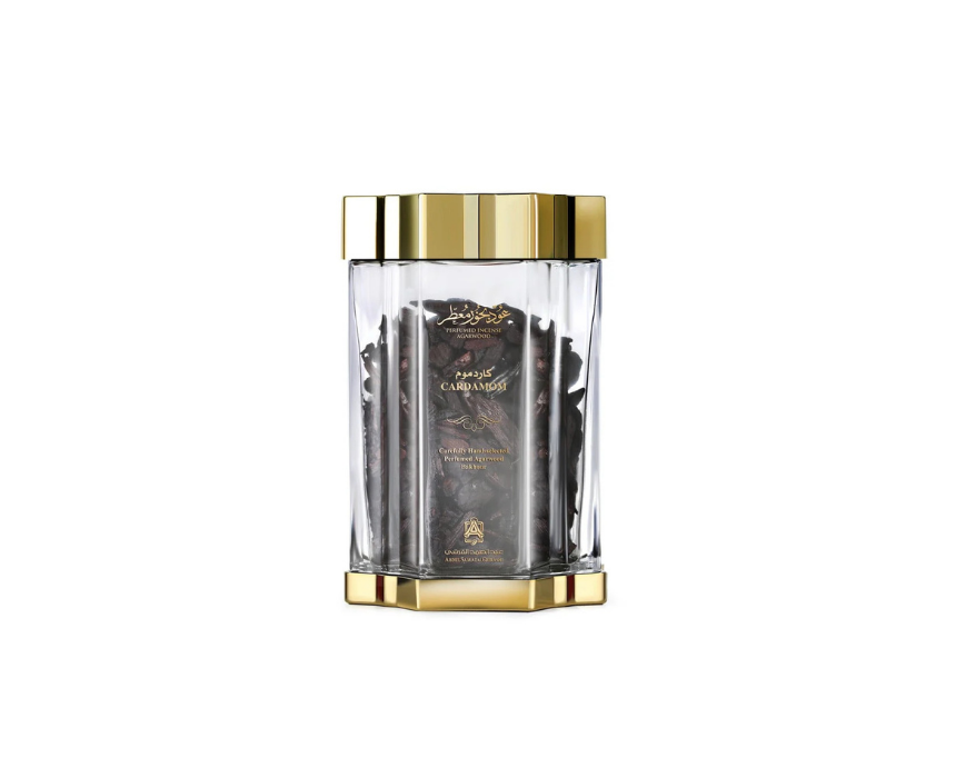 Abdul Samad Qurashi Bakhoor Cardamom is a 70 g fragrant incense that blends luxurious oud with natural cardamom for a warm, elegant, and long-lasting aroma. Carefully crafted to create a distinctive and unforgettable scent, it enhances homes and special spaces with sophistication and luxury. Packaged in a transparent box with a golden lid, it adds a touch of elegance to any setting.