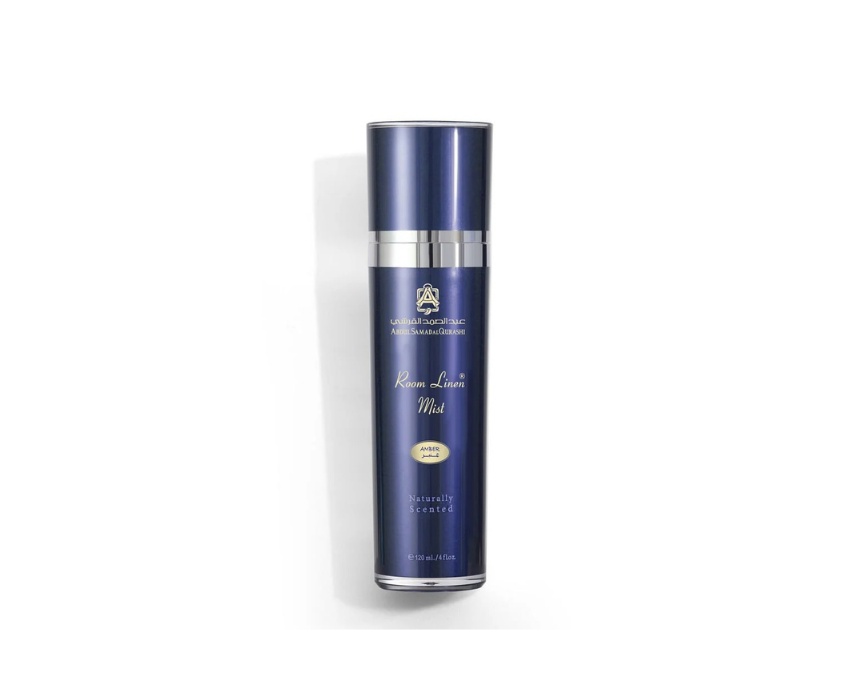Abdul Samad Qurashi Room and Bedding Freshener Amber Mist is a 120 ml home fragrance that infuses rooms and fabrics with a rich, long-lasting amber scent. Featuring top notes of iris, cypress, and jujube berries, a heart of myrrh and patchouli, and a base of woods, honey, vanilla, amber, leather, and musk, it eliminates unwanted odors while creating a luxurious and inviting atmosphere. Ideal for bedding, clothes, and living spaces.