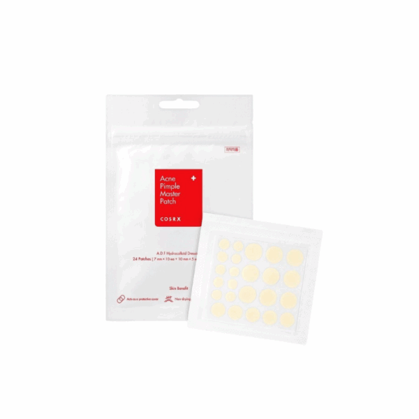 CosRx Acne Pimple Master Patch contains 24 hydrocolloid patches that heal pimples overnight by absorbing gunk and protecting the skin. They maintain moisture to speed up recovery and prevent scarring. Clean the area, select a patch slightly larger than the blemish, and apply it. Can be worn under makeup or on bare skin for discreet protection.