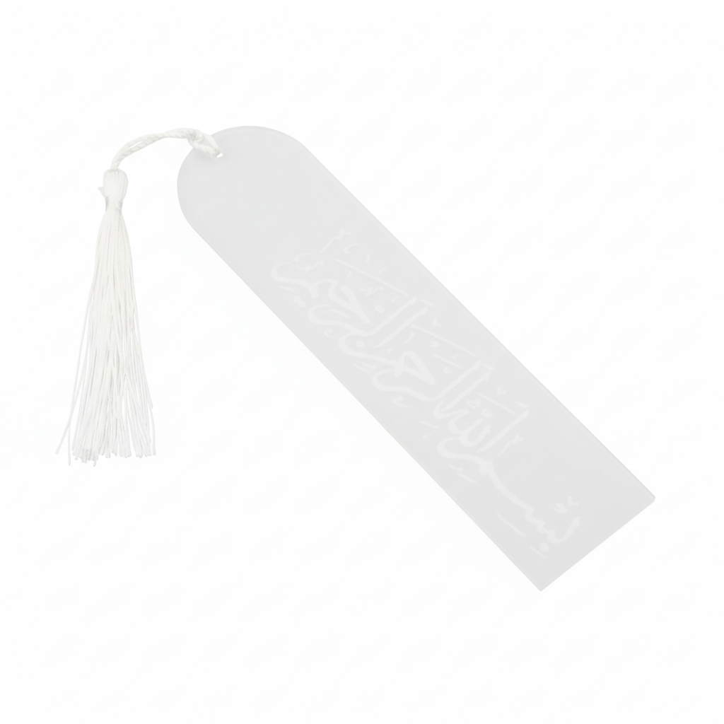 The Bismillah Acrylic Islamic Bookmark is a spiritually enriching accessory that features the sacred opening phrase of the Quran in elegant Arabic calligraphy. Measuring 15 by 3.8 cm, this high quality transparent marker includes a matching tassel and is designed to bring a sense of grace and durability to your spiritual reading or daily studies. To style this beautiful piece, tuck it into a velvet bound Quran or a daily planner and allow the decorative tassel to hang over the top edge to create a serene and organized look that honors your faith and commitment to learning.