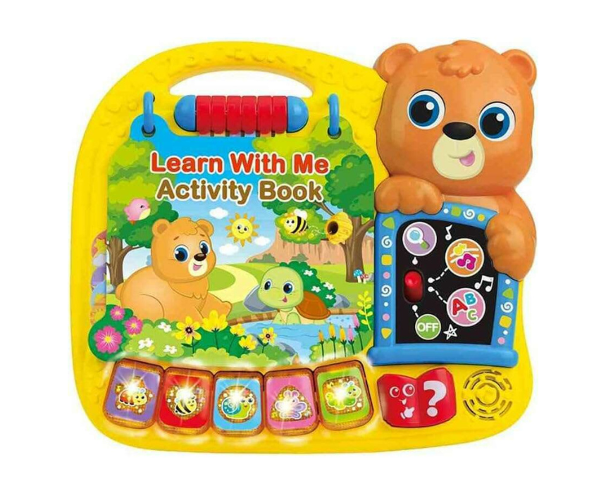 This Interactive Learning Book features 13 colorful pages and 3 engaging modes of play: Learning, Question, and Music. Children can explore letters, objects, and shapes while 5 light-up buttons play fun sounds and melodies, making learning exciting and interactive. With a convenient carry handle, it’s perfect for take-along fun at home or on the go.