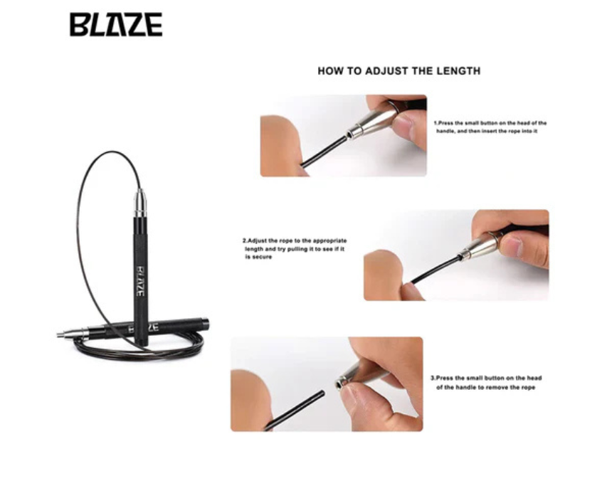 The Blaze Jump Rope features ergonomic aluminum handles and a durable steel rope for smooth, fast rotations, making it ideal for cardio, HIIT, boxing, and full-body conditioning. Adjustable for any height, it offers a comfortable, sweat-resistant grip and reliable performance for beginners and pro athletes alike. Simply hold the handles and rotate the rope to improve coordination, endurance, agility, and overall fitness anywhere.