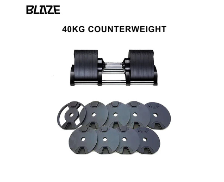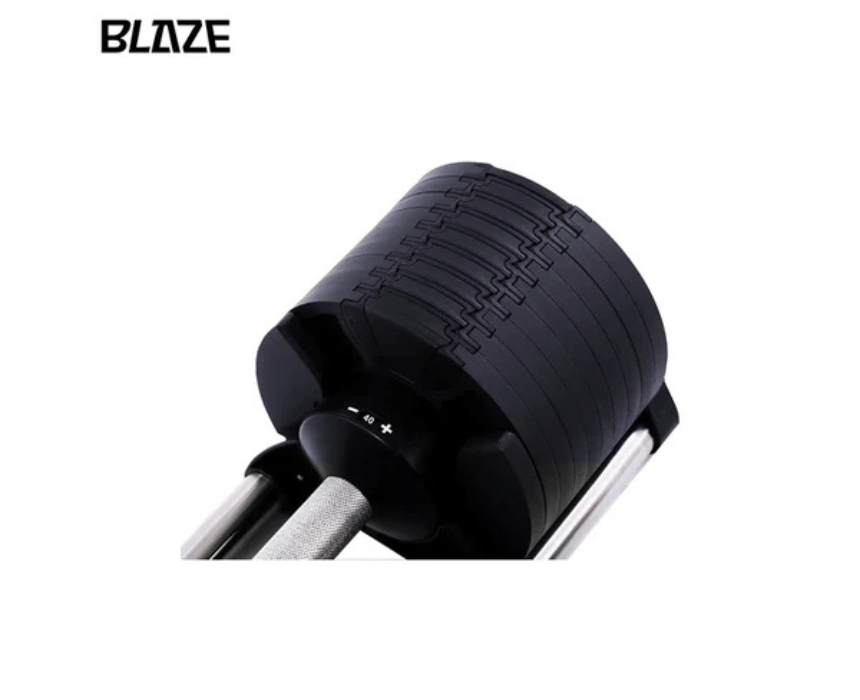 The Blaze Adjustable Dumbbell is a compact, space-saving strength training solution with adjustable weight up to 40kg, offering settings of 5kg, 10kg, 14kg, 18kg, 23kg, 27kg, 32kg, 36kg, and 40kg for progressive full-body workouts. Its smooth weight-change system, ergonomic handle, and balanced construction ensure stability, comfort, and uninterrupted training for beginners and advanced lifters alike. For best use, select the desired weight securely and maintain a firm grip to perform controlled movements across all exercises.