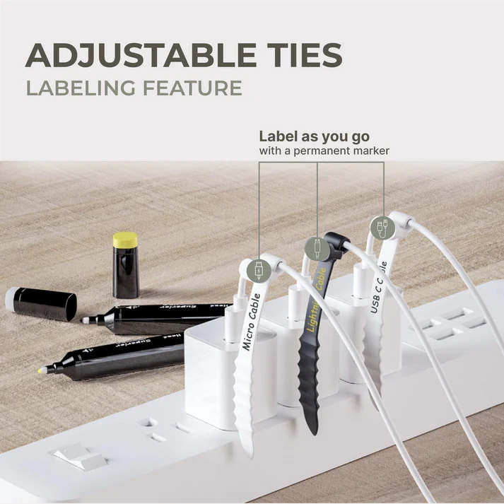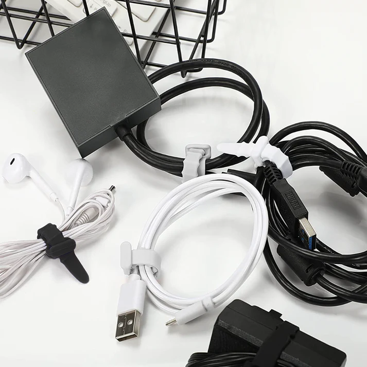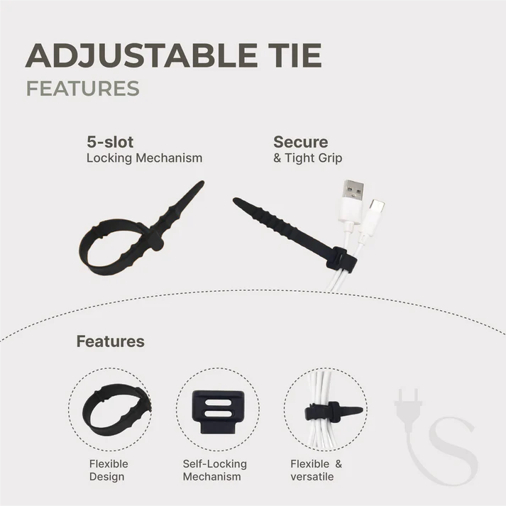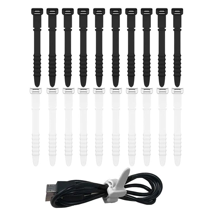 This pack of ten silicone zip ties measures 110 mm by 8 mm and features five adjustable slots for a secure fit. These durable ties are perfect for taming loose cables or sealing food bags and offer a reusable alternative to disposable options. To use simply wrap the tie around your items and thread it through the desired slot for instant organization. Please check dimensions prior to ordering to ensure these are a fit for your needs as this set includes the ties only and does not include an extension cord.