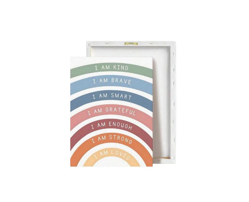 The Kids Affirmations Canvas Frame adds a vibrant and positive touch to any child’s room or playroom. Measuring 27x37cm, it features rainbow colors and uplifting statements designed to inspire self-love and confidence. Perfect as décor or a thoughtful gift, it encourages a cheerful and empowering environment for children.