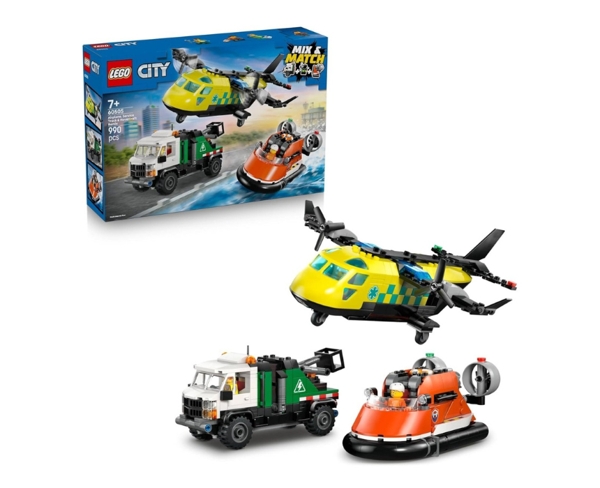 Building set designed with mix and match vehicle parts allowing kids to create an airplane, service truck, and hovercraft for exciting rescue missions. It includes modular pieces, interactive accessories, and character figures to enhance imaginative play. Perfect for creative building, it can be styled as a fun hands on activity for young adventurers.