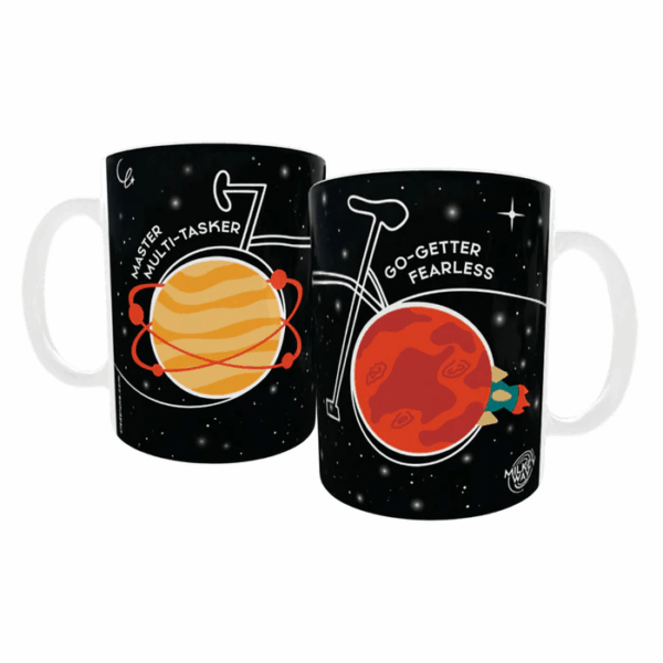 Alien and Star Mug from the Milkey Way Collection features a playful celestial inspired design that adds a unique touch to everyday drinkware. Crafted for daily use, it is suitable for coffee, tea, or other hot beverages while enhancing your kitchen or workspace with a creative accent. Style it on a desk or open shelf as both a functional mug and a decorative piece.