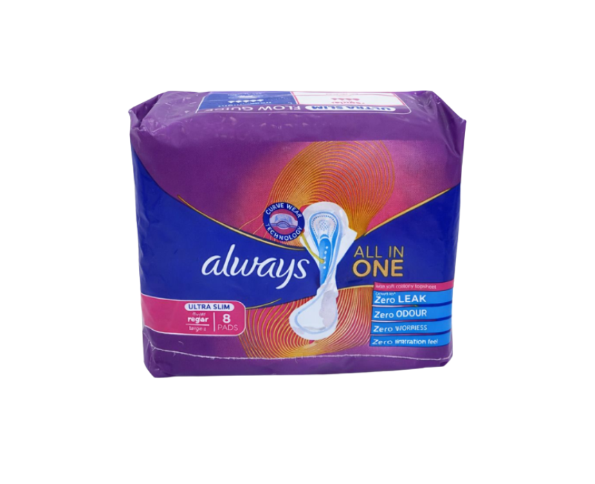 Always All‑In‑One Ultra Slim Pads are lightweight, discreet pads designed for light to moderate flow. Their slim, comfortable profile combines a fast-absorbing core with a soft, breathable top layer to keep you feeling fresh and dry throughout the day. Perfect for everyday use, these pads provide reliable protection in a convenient 8‑pad pack.