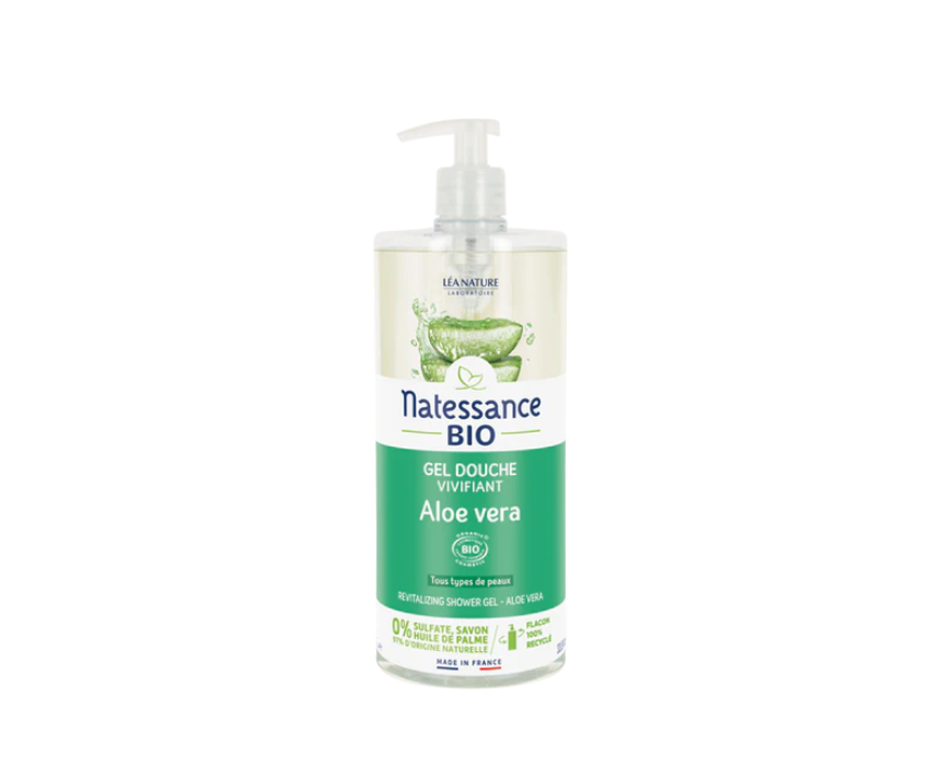 Aloe Vera Revitalizing Shower Gel by Natessance 1 litre is a dermatologically tested cleanser enriched with certified organic aloe vera to gently cleanse, moisturize, and protect the skin while respecting its natural pH balance. The fresh gel texture leaves a light plant like spring fragrance and is ideal for daily use, fitting perfectly into a refreshing morning shower or a soothing self care routine followed by a body lotion.