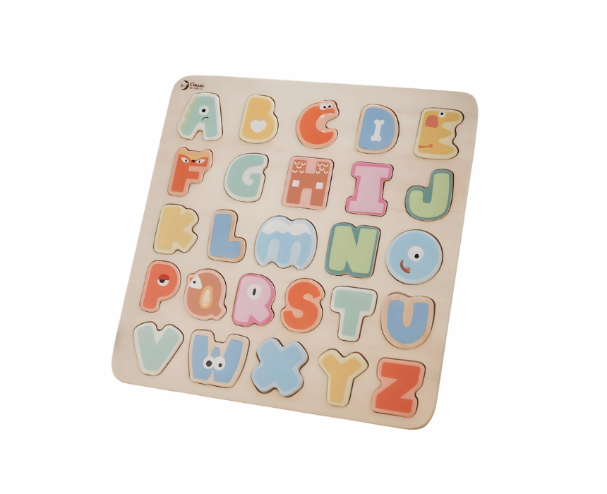 This Classic World alphabet puzzle is suitable for children aged 2 years and above and includes 27 pieces with 26 alphabet letters and a puzzle board. Children can match each letter to its corresponding imprint helping to develop early learning letter recognition and fine motor skills. Designed for safe hands on play it supports cognitive development while making learning fun.