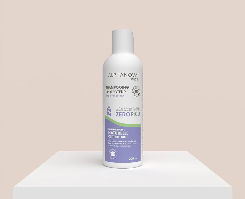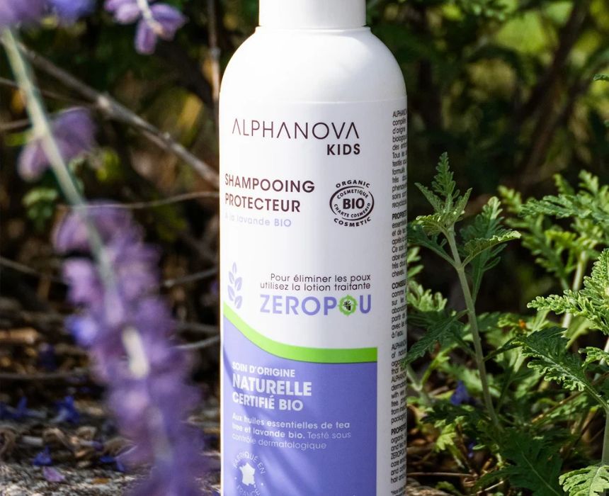 Alphanova Organic Lavender Lice Hair Shampoo 200ml is a gentle, natural shampoo enriched with essential oils of lavender, tea tree, and geranium rosat to help prevent head lice. Infused with organic aloe vera and cotton extract, it soothes the scalp and nourishes the hair, making it ideal for regular use from age 3 and up. Use on wet hair before or after ZEROPOU treatment for optimal protection and healthy, clean hair.