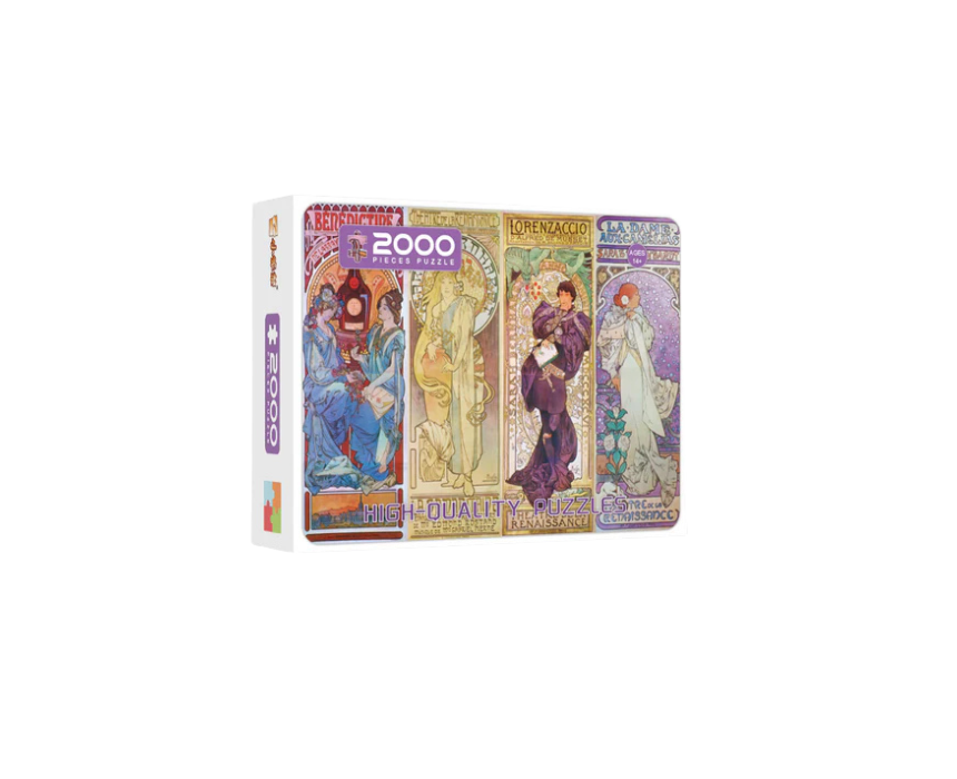 This Alphonse Mucha Les Saisons 1898 Jigsaw Puzzle features 2000 pieces that assemble into a stunning 100 x 70 cm Art Nouveau masterpiece. Ideal for art lovers and puzzle enthusiasts, it offers a challenging and rewarding build and can be styled as framed wall décor, a centerpiece display, or a unique gift for collectors.