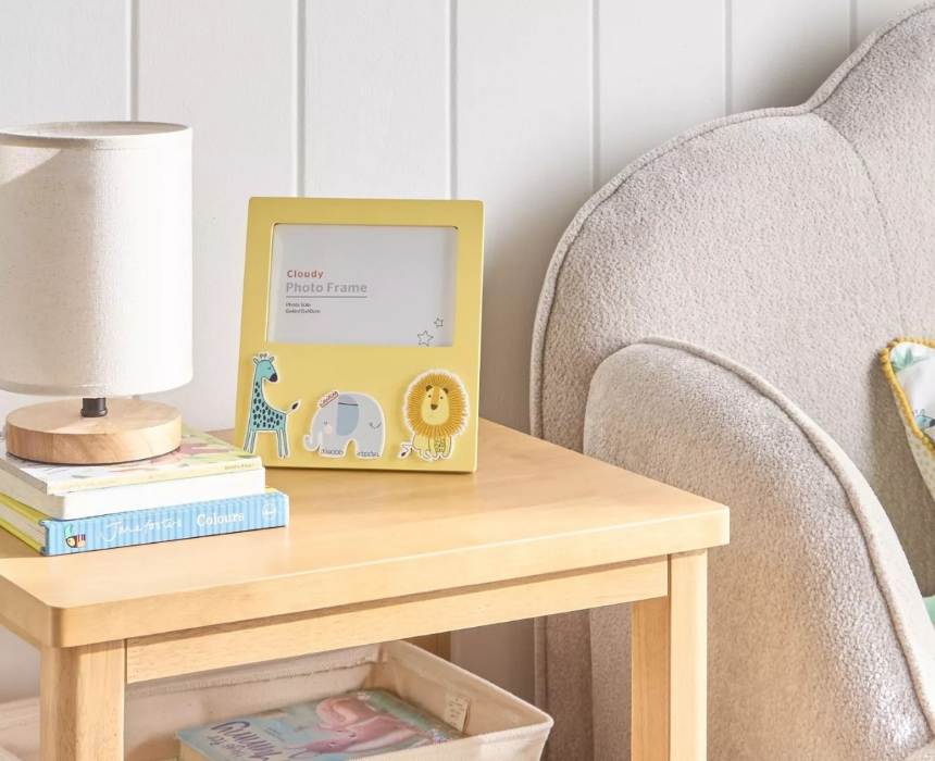 This photo frame measures 18 by 20 cm and is crafted from high quality MDF and glass for durability and style. Designed for kids’ rooms, it adds a playful and charming touch while showcasing your favorite family memories. Practical and decorative, it brightens any child’s space.