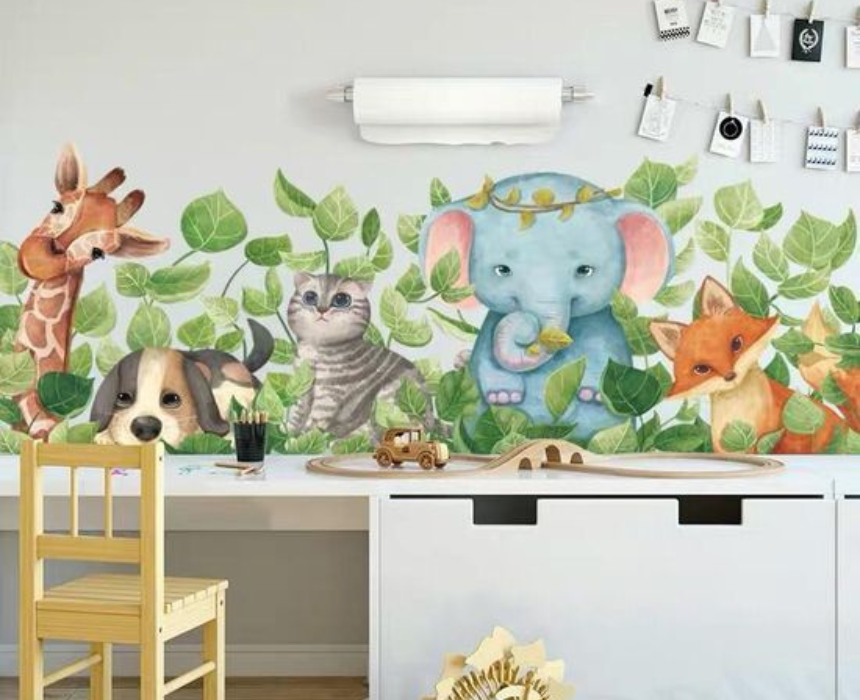The Animals and Greenery Wall Sticker features five adorable animals—elephant, giraffe, dog, cat, and fox—perfect for decorating a kids’ room or nursery. Measuring 40 H x 120 W cm, it adds a playful and colorful touch to walls while inspiring imagination. Easy to apply and remove, this sticker is a fun and decorative way to brighten any space for children.