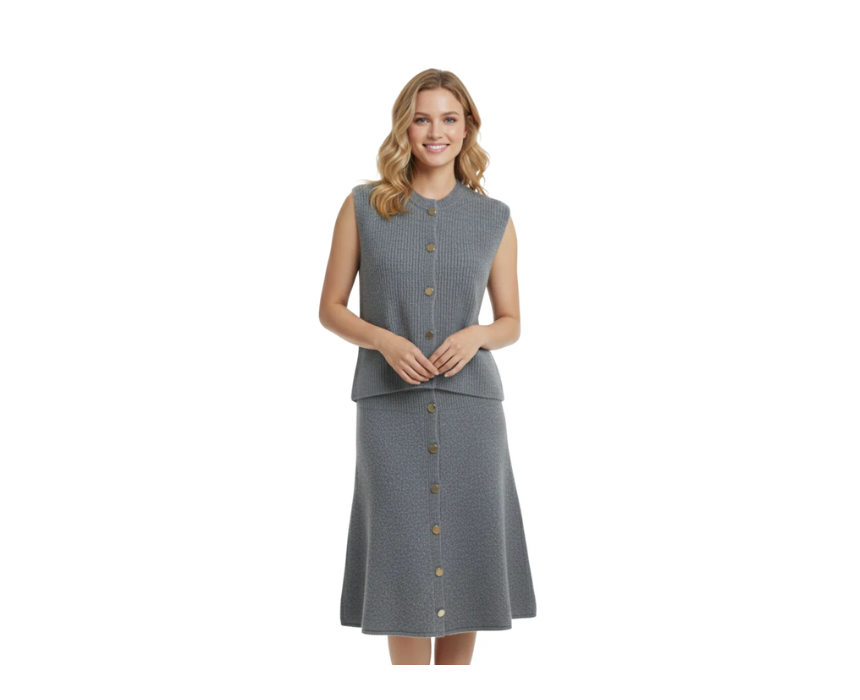 Antra Knitted Set With Gold Button Design