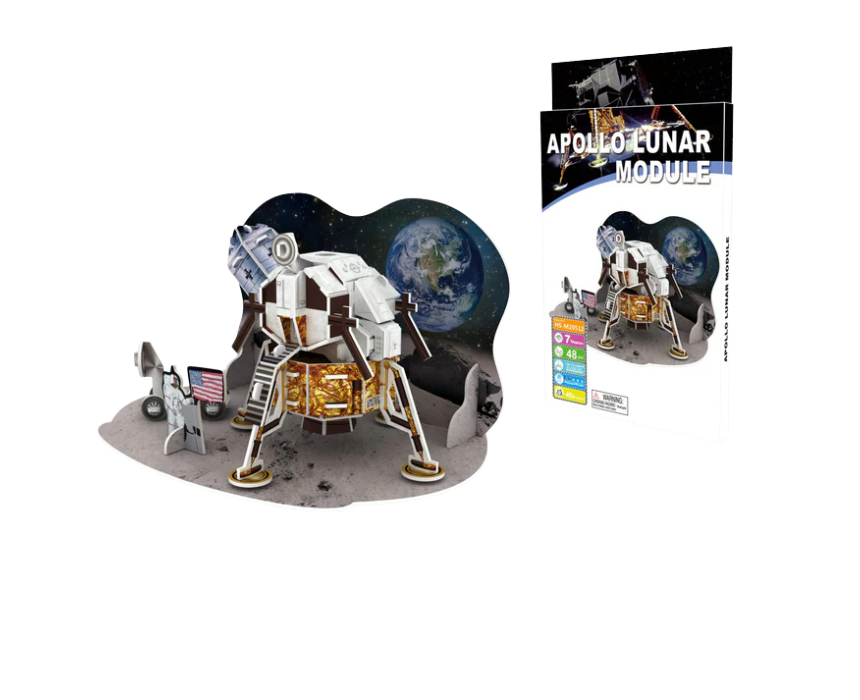 Apollo Lunar 3D Foam Puzzle Small is a hands-on educational model of the Apollo lunar module, crafted from lightweight foam pieces for simple assembly. It forms a sturdy three dimensional display perfect for desks, shelves, or classroom décor. Ideal for space enthusiasts, students, and collectors, it offers an engaging activity while celebrating the historic Moon landing.