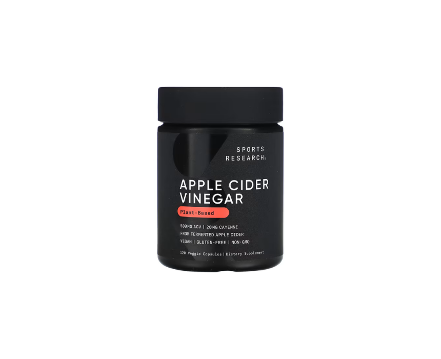 Sports Research Apple Cider Vinegar 120 Veggie Capsules combines fermented apple cider with cayenne pepper in a convenient capsule form. This synergistic blend supports diet cleanses, digestion, and gut health while eliminating the tart taste of liquid vinegar, making it easy to include in a daily wellness routine.