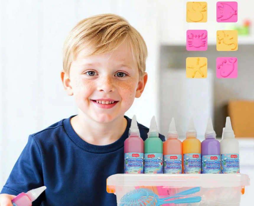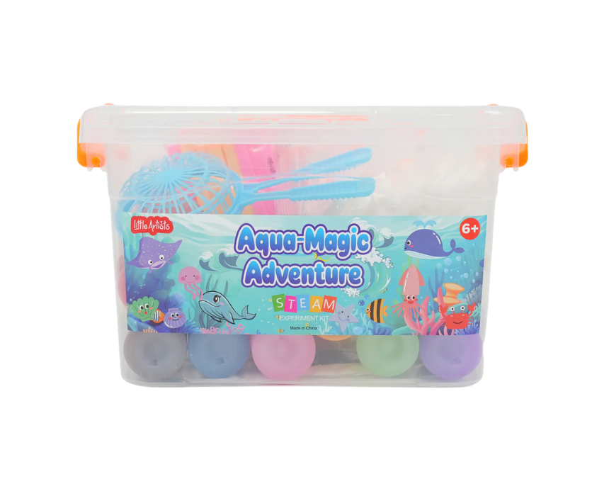 The Aqua Magic Adventure Kit offers kids a fun, hands on DIY experience that transforms water into colorful ocean creations while introducing early STEAM learning. Designed for safe, mess free play at home or school, it helps build focus, creativity, and fine motor skills through imaginative storytelling. Children simply mold and place their designs in water to bring their underwater scenes to life again and again.