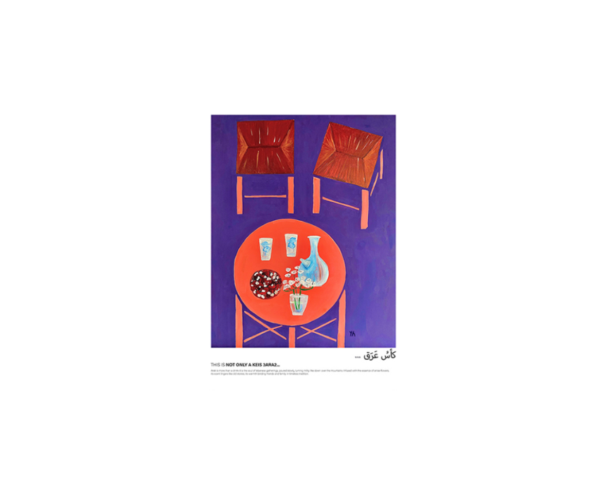 This Arak print is crafted on premium paper in a 30×40 cm size, offering a clean and stylish art piece that celebrates the essence of traditional Arak culture. It adds a refined touch to kitchens, bars, or living rooms and can be styled by framing it in wood, metal, or acrylic to match any interior.